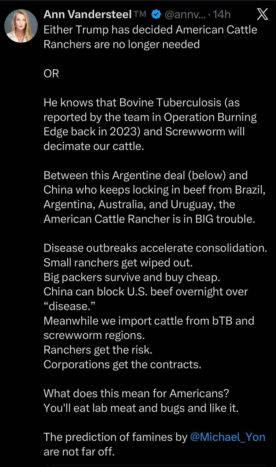 Tue Feb 10 13:34:40 2026 (*4297a328*):: +public! You think @realdonaldrrump will fuck over the independent rancher?