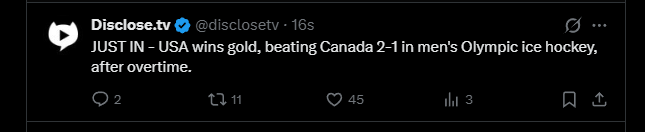 Sun Feb 22 20:17:28 2026 (*4297a328*):: +public! They need to learn to think things through https://x.com/claytravis/status/2025600959448039855?s=46 *** Clay Travis (@ClayTravis) on X *** If Canada had been smart and become the 51st state, they’d be gold medalists right now. *** X (formerly Twitter) (*53e37792*):: https://x.com/rawsalerts/status/2025661368410550441 *** R A W S A L E R T […]