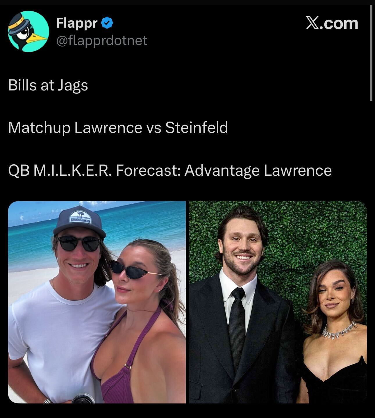 Sun Jan 11 20:30:52 2026 (*53e37792*):: I want to follow the QB M.I.L.K.E.R. Analytics (Matrimonial Influence Leverage and Kinetic Endowment Rating) https://x.com/flapprdotnet/status/2006872130730729743 +public! *** Flappr (@flapprdotnet) on X *** After months of analyzing NFL player stats, we believe we have cracked the code to NFL scouting. The QB M.I.L.K.E.R. Analytics (Matrimonial Influence Leverage and Kinetic […]